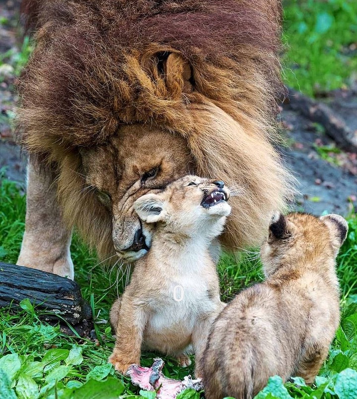Although he was very gentle with the cubs, they screamed every time he came near and tried to move them. Despite all the unruly attitudes of the cubs, the father lion tried his best to be a good father to the little cubs untill their mother was returned to them.The cubs were seen jumping all over their mother immediately they sighted her in the park.